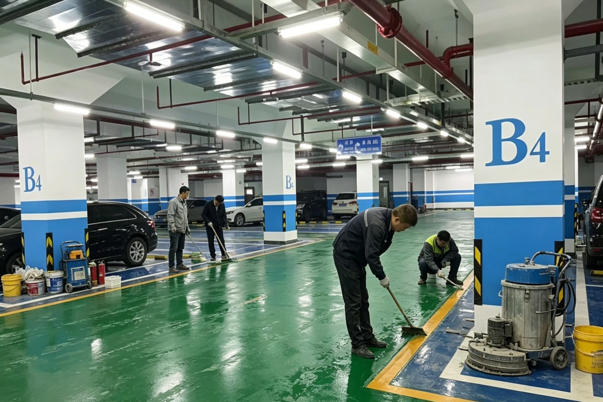 沈阳于洪马三家劳动教养院车库停车场环氧地坪施工厂家